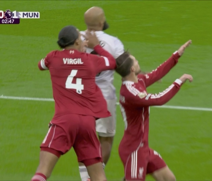 > 范迪克争顶中肘击麦卡利斯特! 体育录像/图片